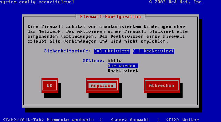 system-config-securitylevel-tui – Assistent für die Firewall/SELinux