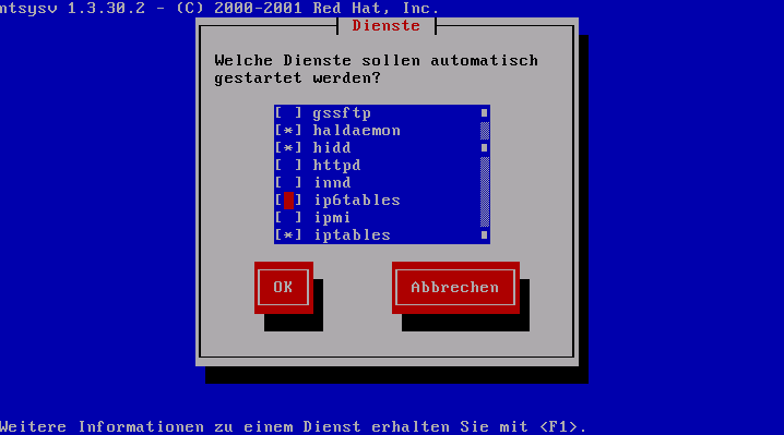 Durch die Installation des Standard-„Server“-Softwarepakets sind die meisten Grunddienste auch gleich installiert bzw. hinterlegt.