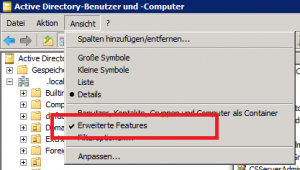Abbildung 1: Benutzer und Computer – Erweiterte Einstellungen