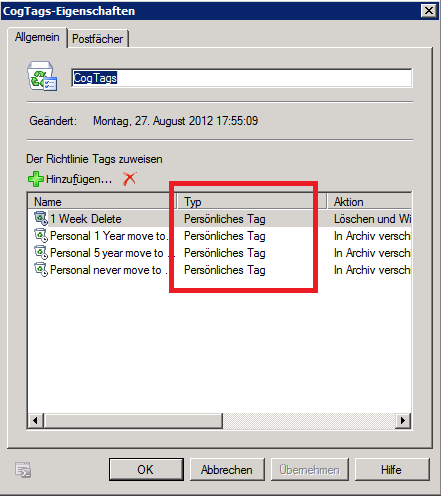 Auch wenn dies im ersten Augenblick nicht relevant ist: sollte nicht vergessen werden, dass diese Richtlinien auch die automatische Löschung/Wiederherstellung veranlassen können!!! (ggf. vorher schauen oder eigene Richtlinien anlegen wie hier rot/blau)