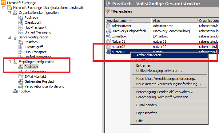 Exchange 2010 Archivierung aktivieren (offline)