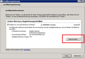 Dies geht aber auch später über den Browser der auf die Seite mit dem Zertifikat zugreift.