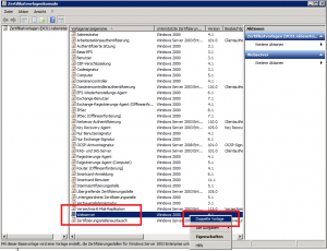 Das Definieren der neuen Vorlage ist leider noch nicht alles, man muss diese auch noch in den Dienstleistungskatalog der CA aufnehmen, damit diese Vorlage später auswählbar ist.