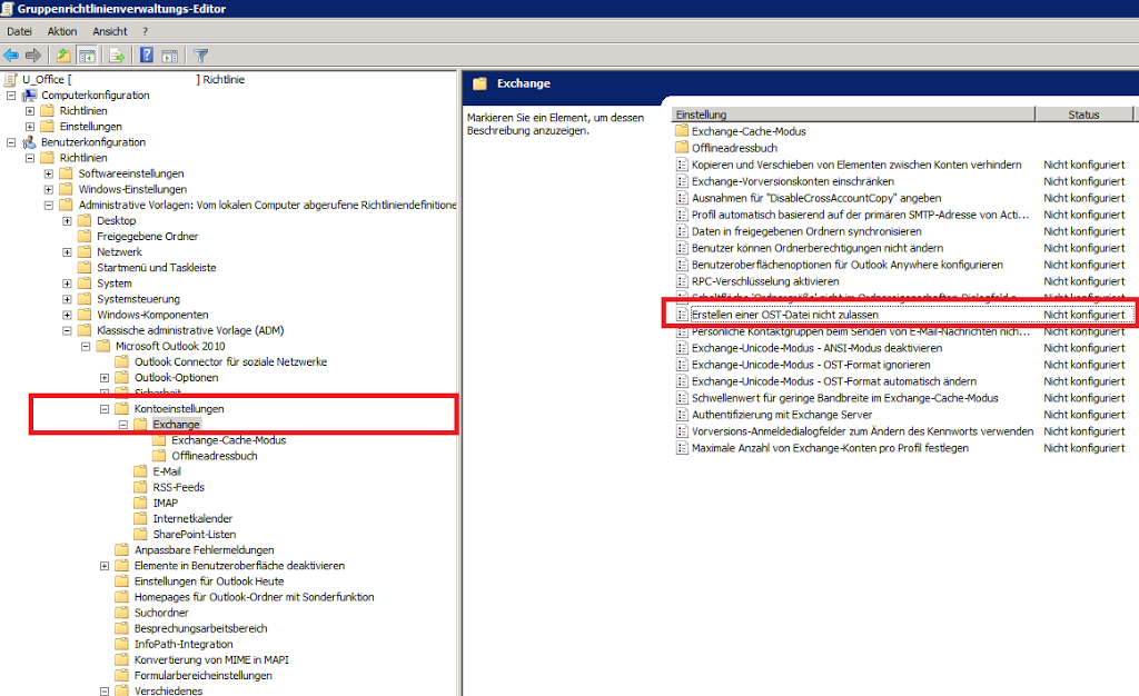 Falls die Computer der Mitarbeiter im ‚Cached Exchange‘ zu große Datenmengen anhäufen, kann dies so unterbunden werden.