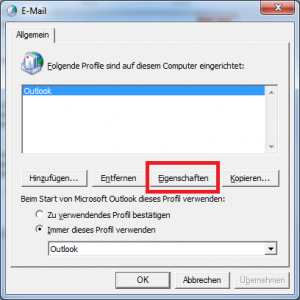 Das Standard-Profil von Outlook heißt immer…Outlook.