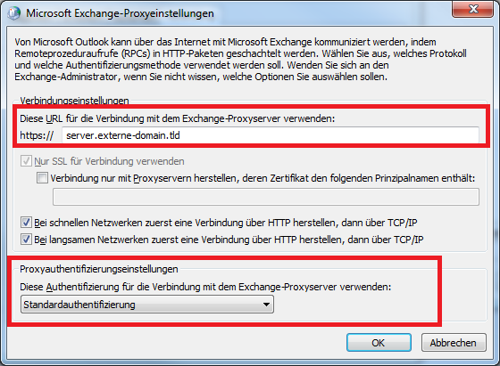 Abbildung 6: Proxy-Einstellungen Outlook für Exchange