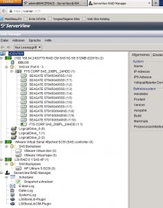 Nun sind der RAID-Controller, die Festplatten und die logischen Laufwerke im RAID Manager einsehbar.