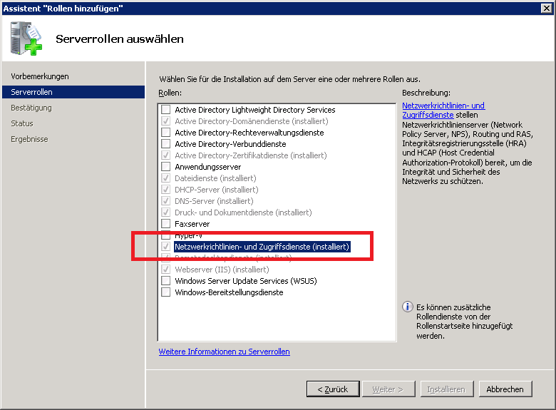 1. Installation von RADIUS auf Windows Server 2008 R2