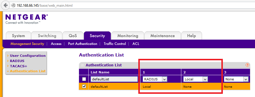 (im Test war ohne lokale Authentifizierung keine Möglichkeit mehr den Switch zu konfigurieren)