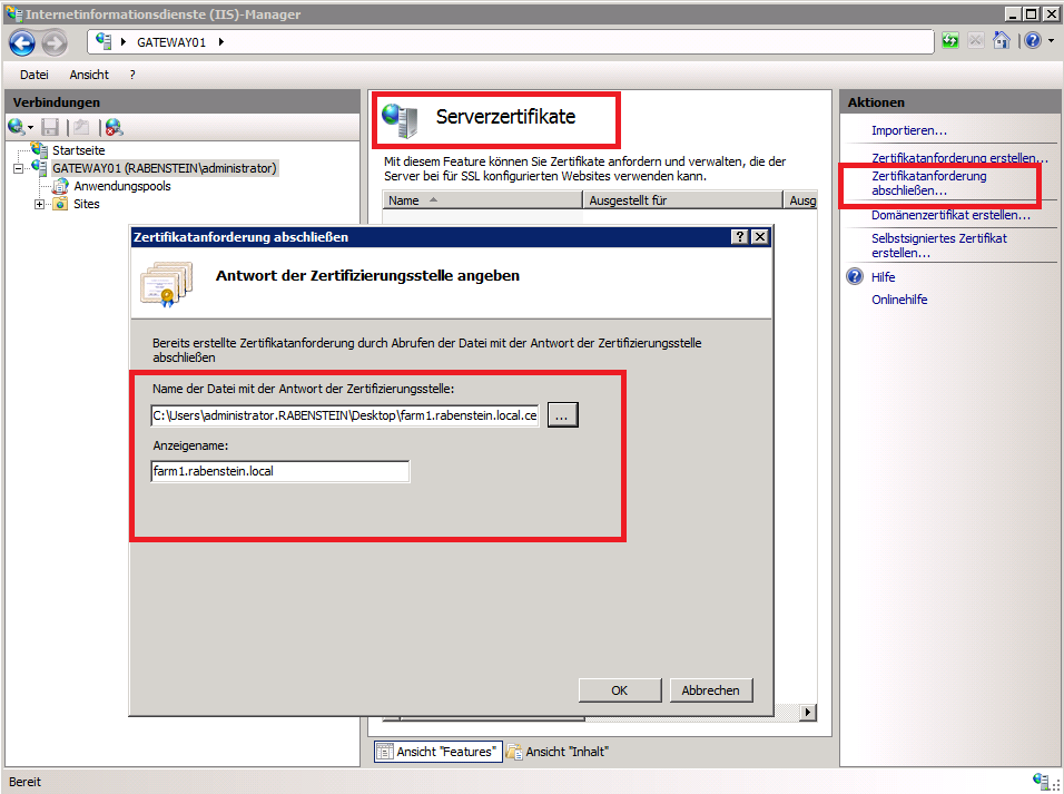 Zertifikate: Anfrage abschließen im IIS