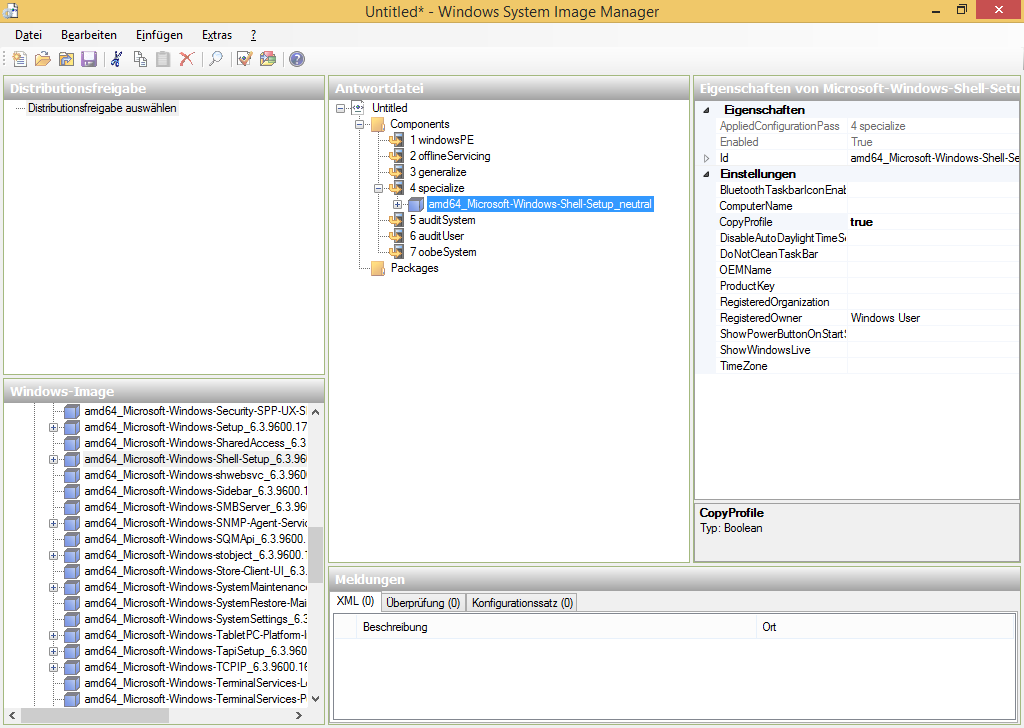 Für die Installation des Windows System Image Manager wird das ehemalige WAIK bzw. nun das WADK (Windows Assessment and Deployment Kit) benötigt. (ca. 4 GB – der Manager verbraucht bei Installation jedoch nur 55MB)