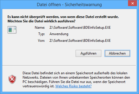 hiermit rolle ich Mal ein altes Problem auf – der Netzwerkzugriff auf Dateien und Programme der schon vor der UAC per Meldung bemängelt wird.