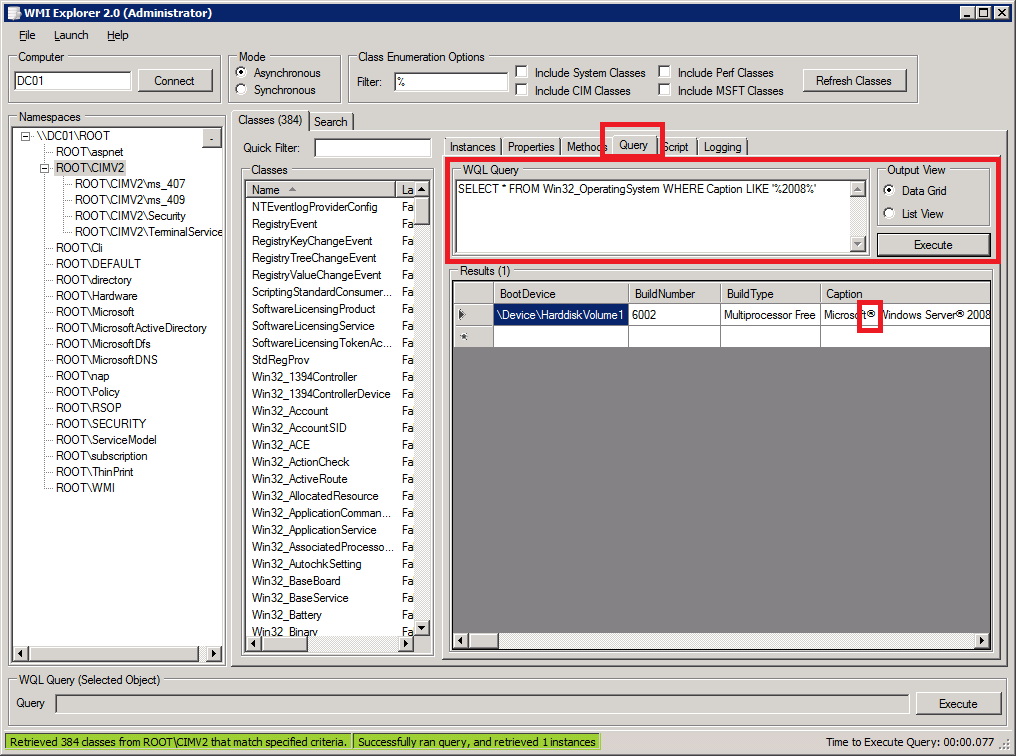 Abbildung 1: WMI Explorer Query Check