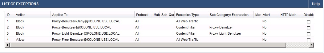 • Proxy-Benutzer-Deny : Benutzer soll kein Internetzugriff haben