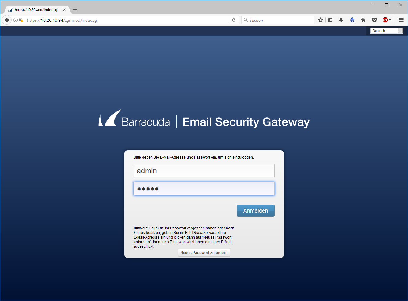 Abbildung 1: Anmeldung Appliance