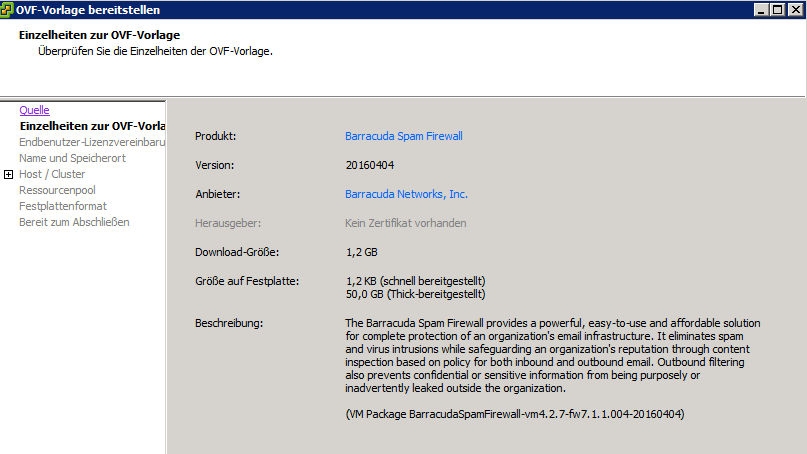 in diesem Artikel wird kurz das Ausrollen der Barracuda-Appliance beschrieben.