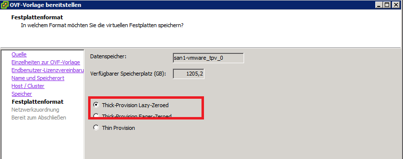 Abbildung 6: Schnellformatierte & vollexpandierte VMDK