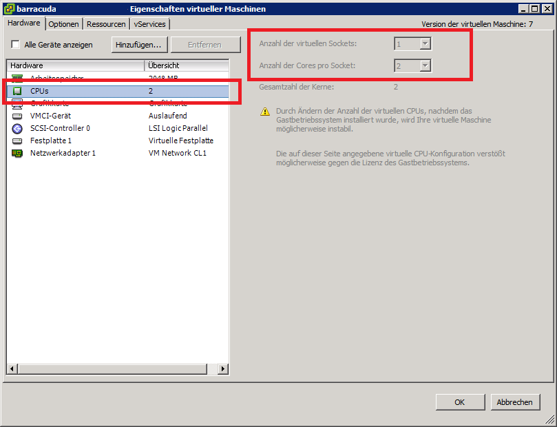 Abbildung 7: Anpassung der Hardware an Lizenz
