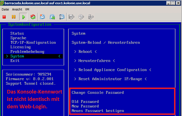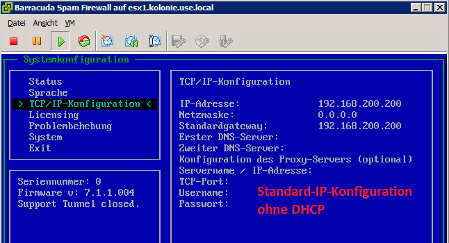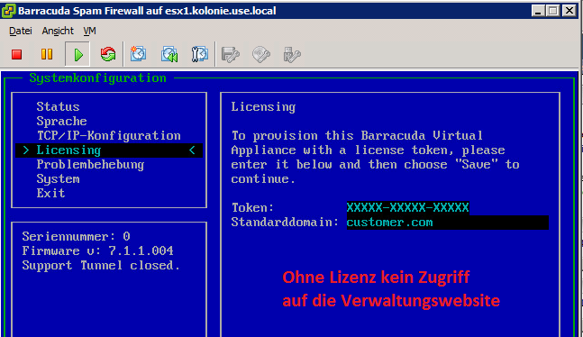 DIe Barracuda Appliance kann nicht ohne Lizenz konfiguriert werden,