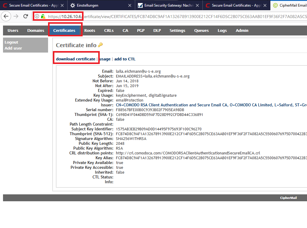 Ciphermail – COMODO Zertifikate registrieren & importieren