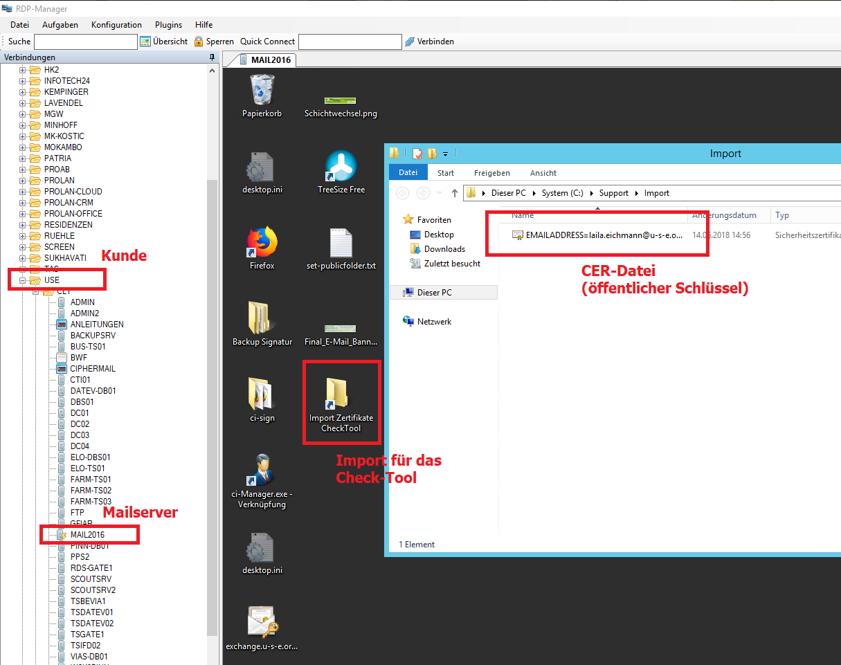 „Import keys“ (Mitarbeiter) importiert immer Zertifikate mit privaten Schlüsseln über die E-Mails entschlüsselt werden können,