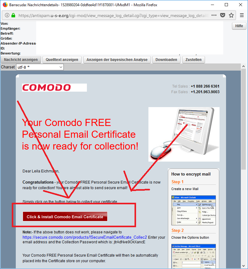 Abbildung 3: COMODO-Mail Bestätigungslink aus der Barracuda öffnen