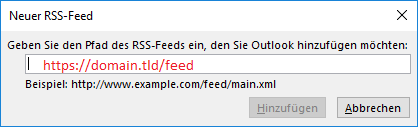 Die Feed-Adresse ist meist ein Web-URL der vom Anbieter vorgegeben wird,