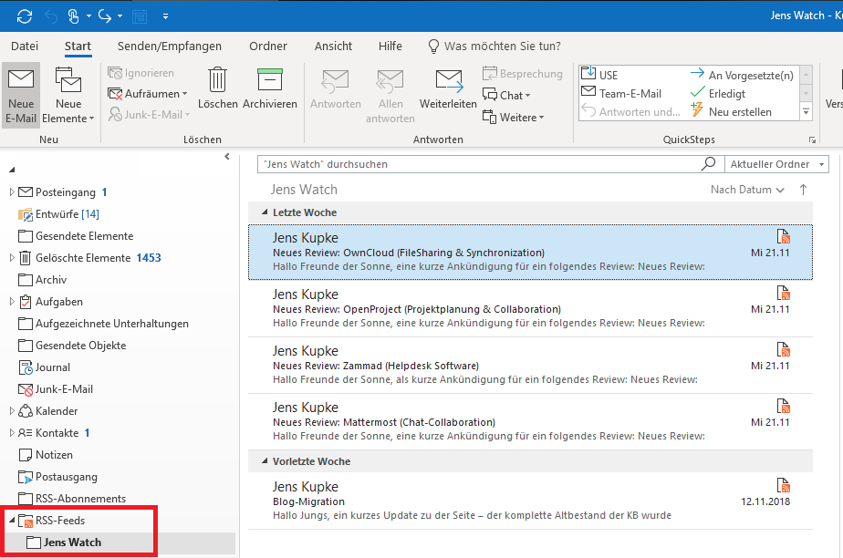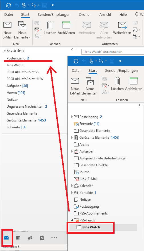 Abbildung 6: RSS-Ordner unter die Favoriten ziehen