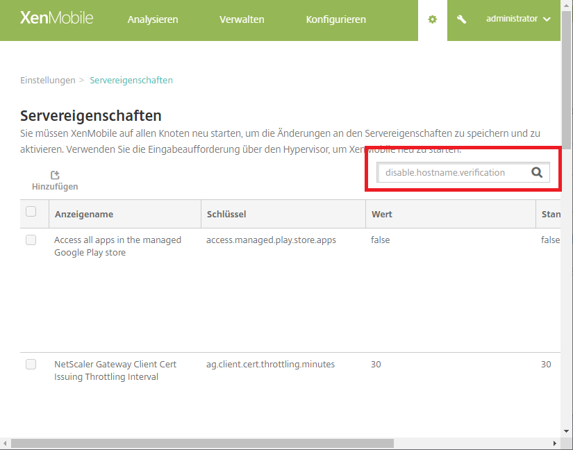 4. Suchfeld „disable.hostname.verification