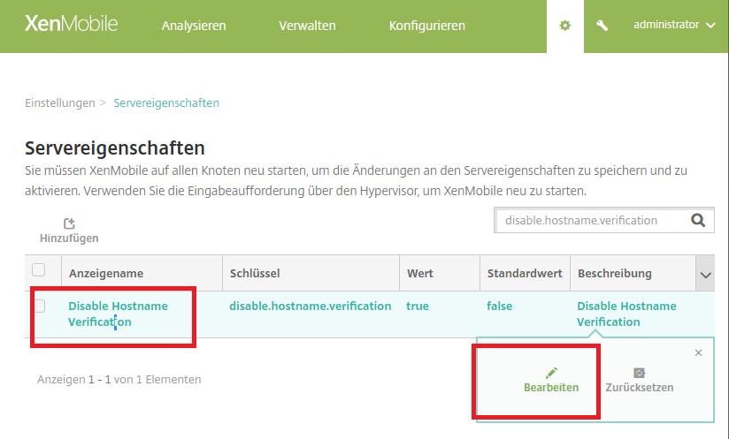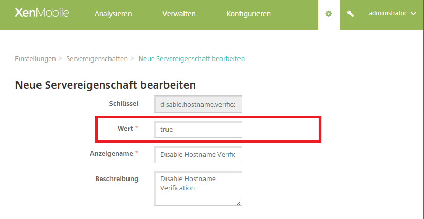 By default, host name verification is enabled on outgoing connections except for the Microsoft PKI server. If host name verification breaks your deployment, change the server property disable.hostname.verification to true. The default value of this property is false. – Zitat aus der Doku von Citrix