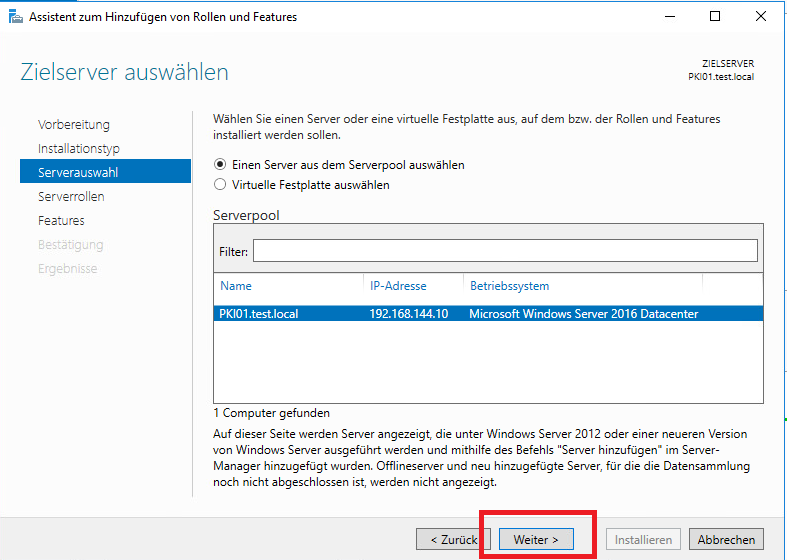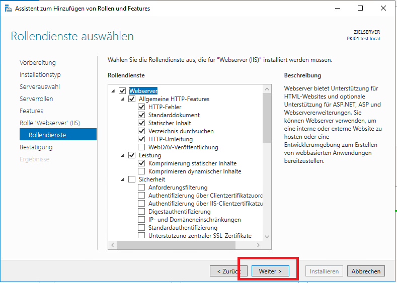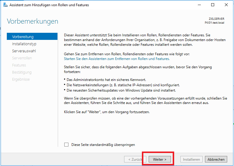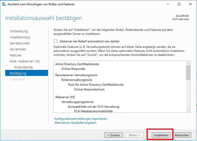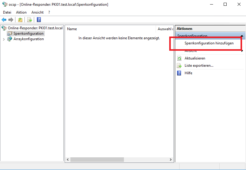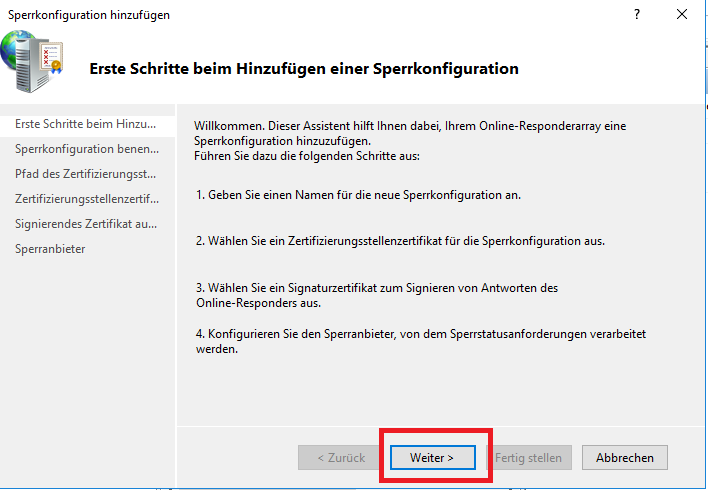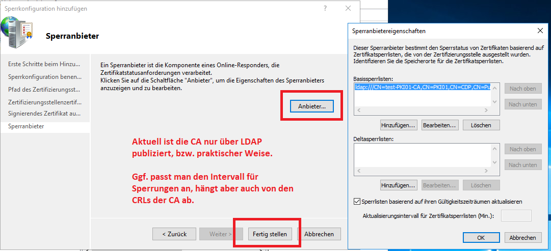 Ggf. muss später manuell ein OCSP-Zertifikat ausgestellt werden, wenn es keine Domänen-CA ist.