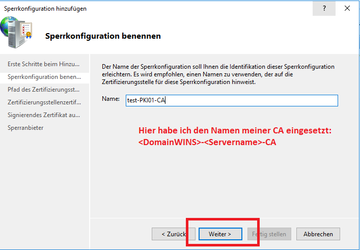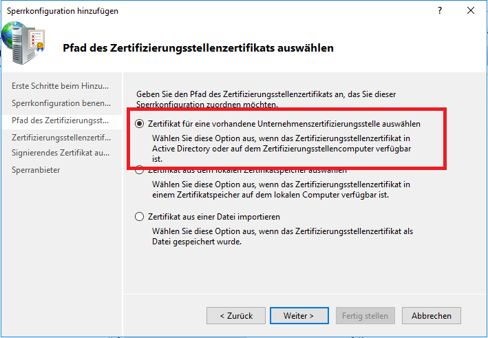 In unserem Szenario die Unternehmenszertifizierungsstelle.