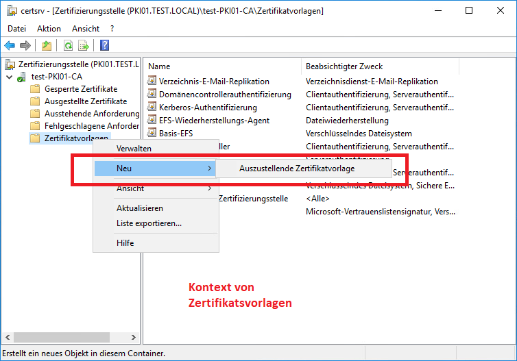 Abbildung 4: Zertifikatsvorlagen ausstellen