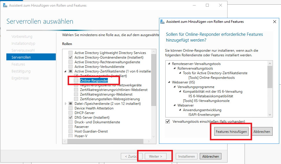WICHTIG: Vorher muss eine Funktionsvorlage für den Online-Responder erst noch in der CA freigegeben werden!