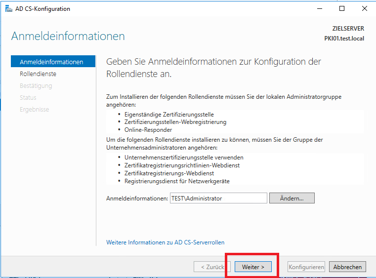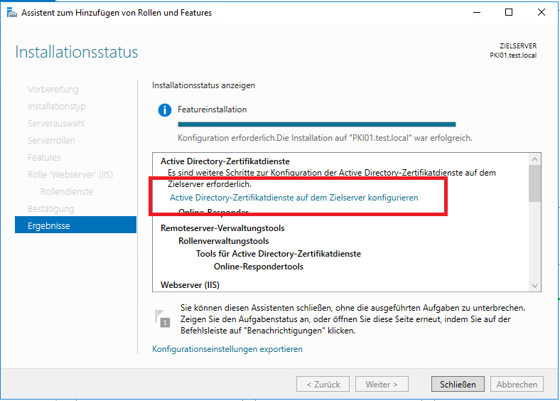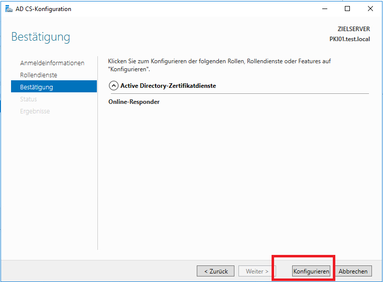 Abbildung 10: Zertifikatsdienste konfigurieren