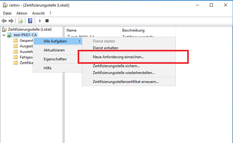 Abbildung 2: Neue Anforderung einreichen (certsrv.msc)