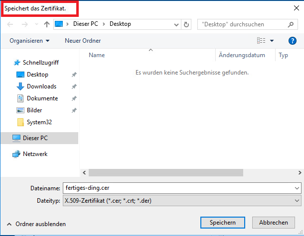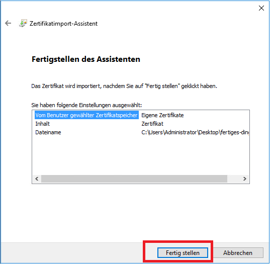 nun das große Finale – der Abschluss der benutzerdefinierten Zertifikatsanfrage.