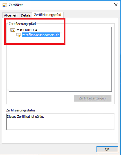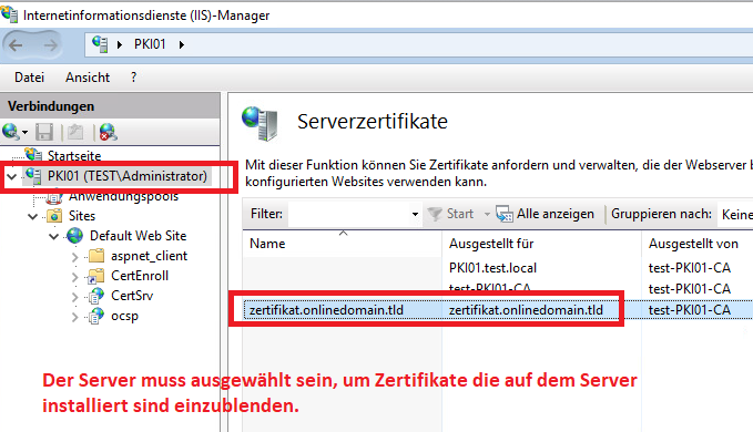 Abbildung 14: Zertifikat im IIS (Webserver)