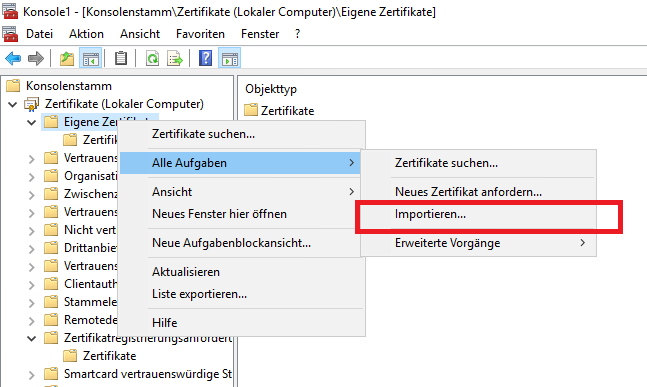 Abbildung 6: Import Zielsystem (MMC/Zertifikate)