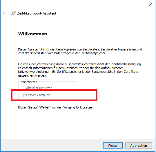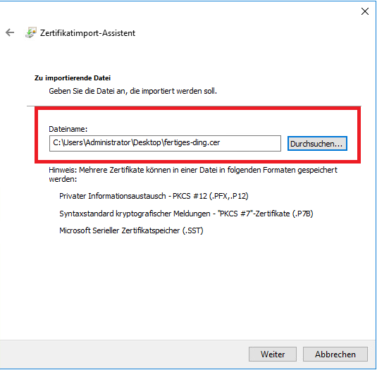 für den Import von Zertifizierungsstellenzertifikate (super Wort für Scrabble)