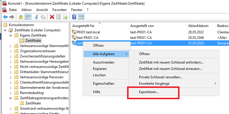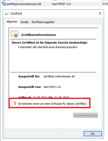 Abbildung 12: Kontrolle des Imports (MMC/Zertifikate)