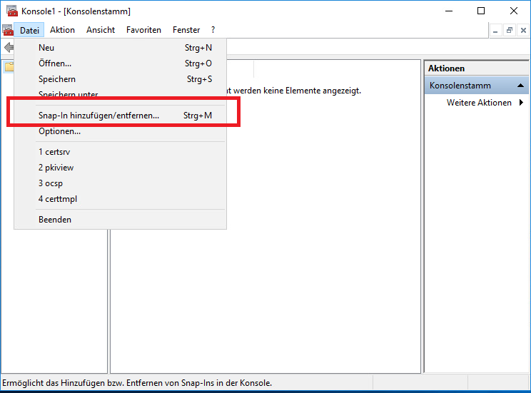 Das starten der MMC (Microsoft Management Console) kann über Ausführen mit „mmc“ erledigt werden.