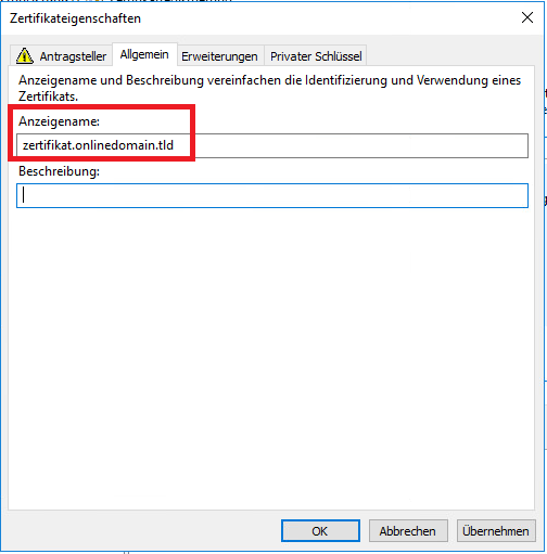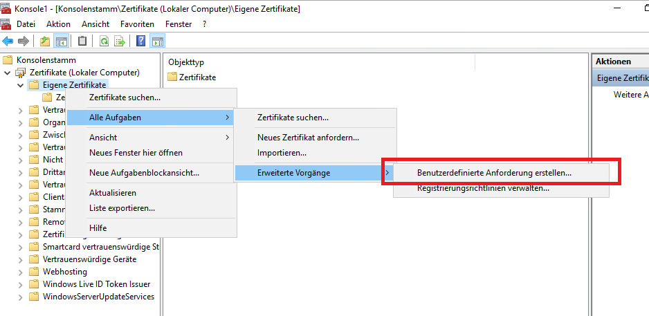Benutzerdefinierte Zertifikatsanfrage erstellen