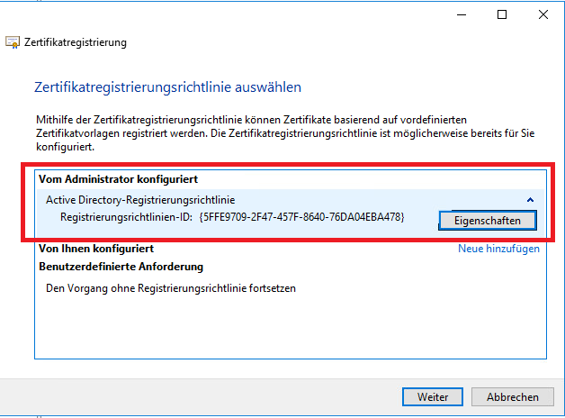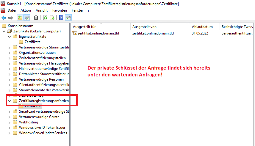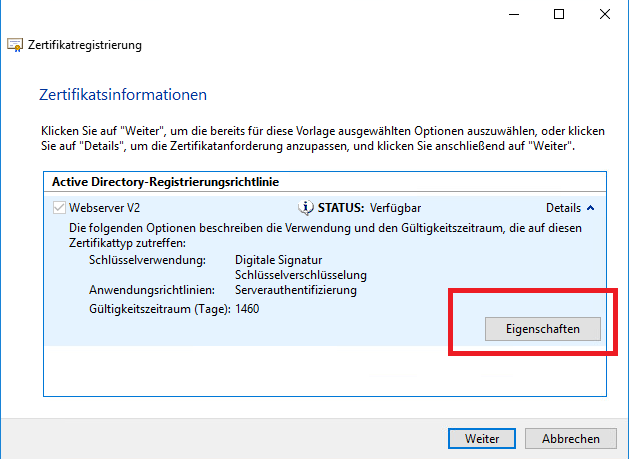 Hier hat man den Vorteil der Domänen-Zertifizierungsstelle, sie zeigt sich!
