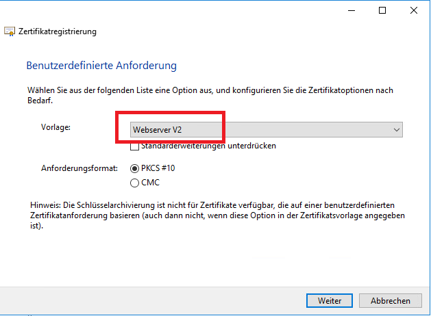 - Benutzerdefinierte Zertifikatsanfrage (sie befinden sich hier)