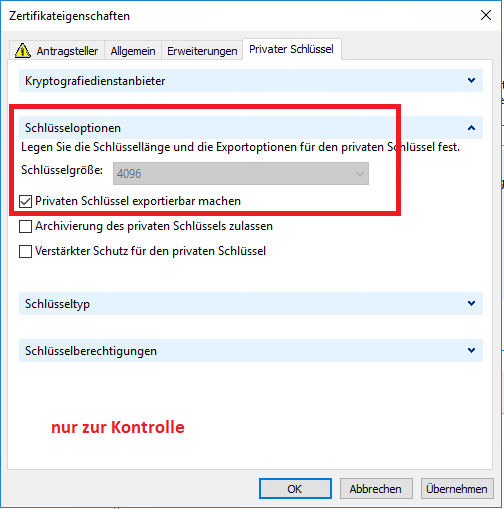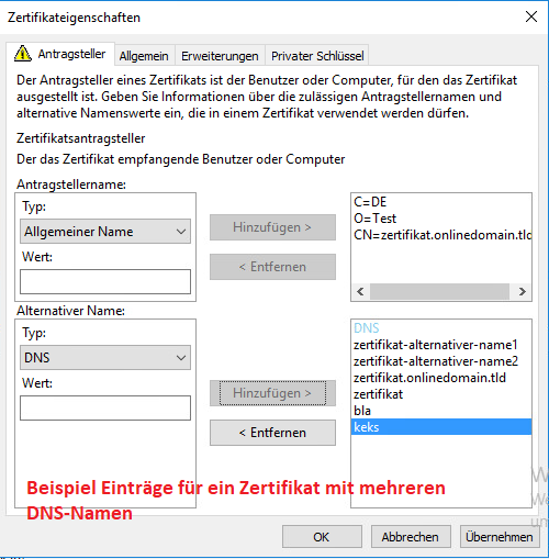 Dies macht Sinn, wenn ich nicht als Mitarbeiter sondern für den Webserver ein Zertifikat ablegen möchte.