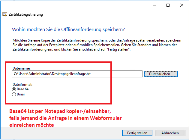 - Abschließen der benutzerdefinierten Zertifikatsanfrage
