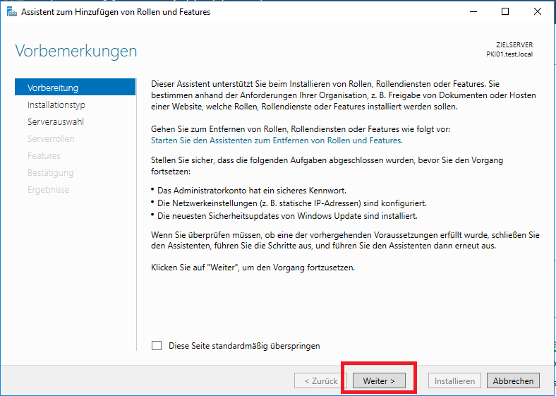 Ziel ist es hier, keine weiteren Funktionen außer der CRL & CA-Zertifikatsbereitstellung zu erledigen.