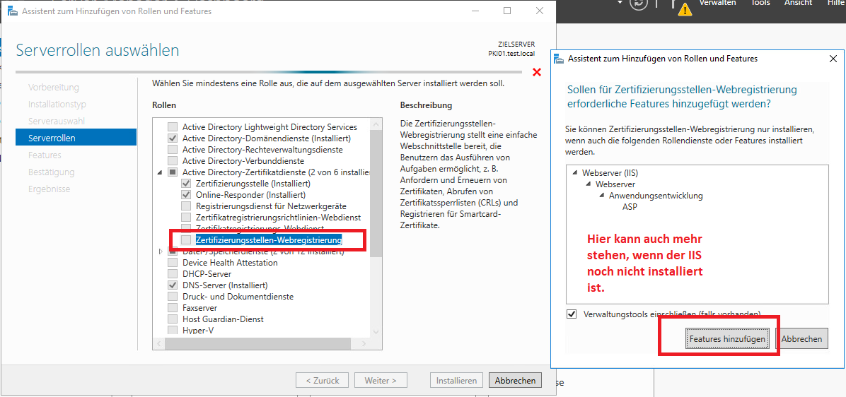 Installation der einfachen Webregistrierung und Freigabe der Zertifikate per HTTP