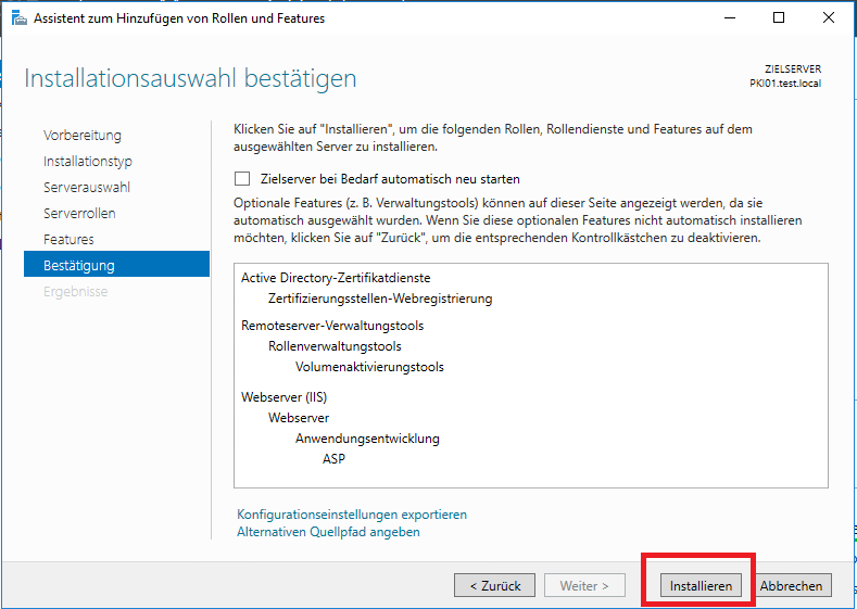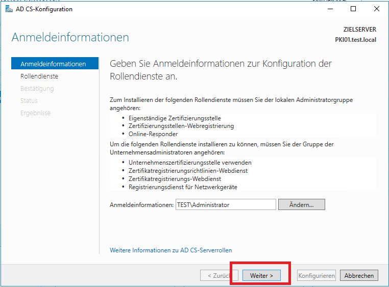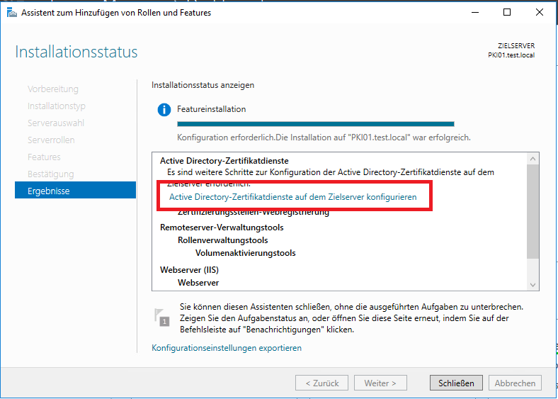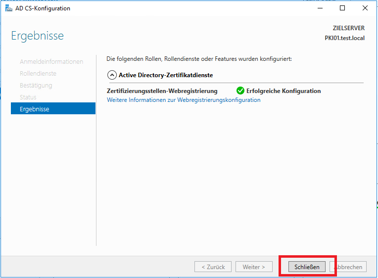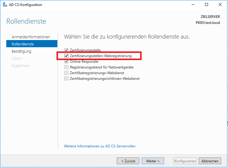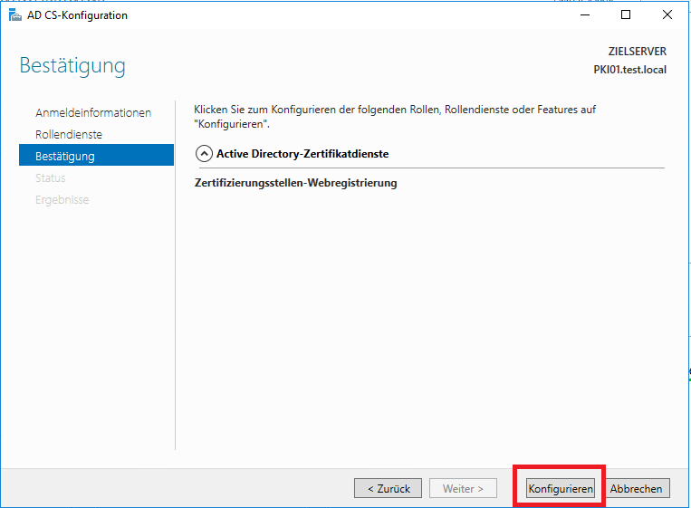 Abbildung 8: Zertifikatsdienste konfigurieren